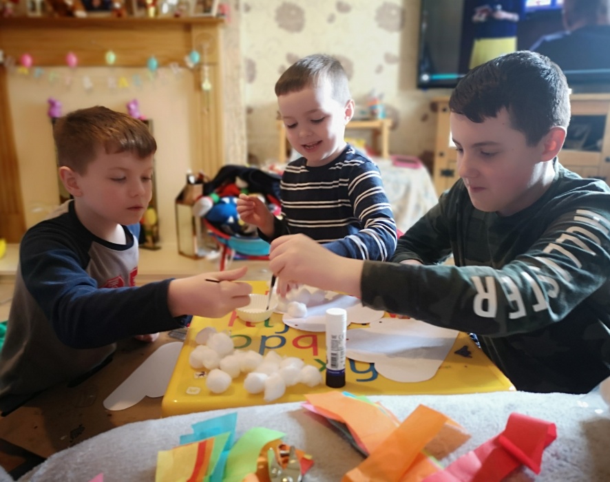 We have been keeping busy today with our home learning and using our creative skills to make window decorations to brighten up our day and make whoever sees them smile.