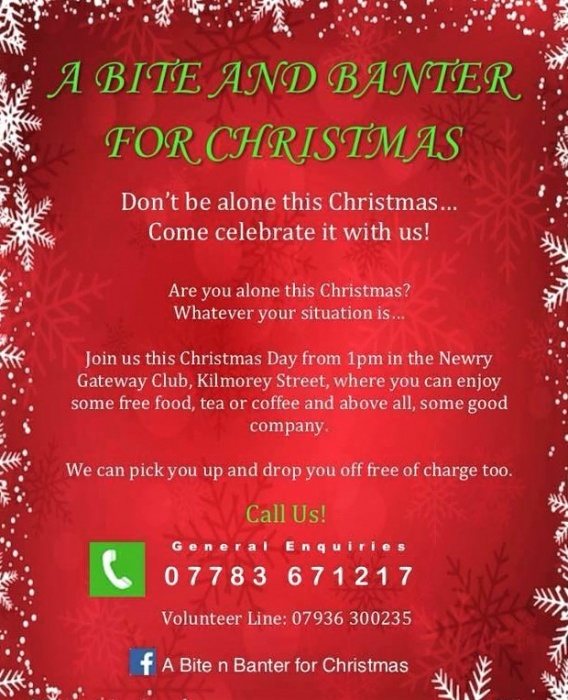 A group of local people are giving up their Christmas Day to organise a fantastic Christmas Day Party at the Gateway Club, Kilmorey Street for anyone who might otherwise be alone.