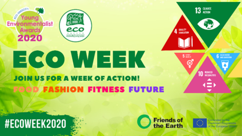 ECO WEEK is a week-long initiative that includes a series of online events focused on the topics of Food, Fashion, fitness & Future. These events will take place as webinars, podcasts, content, talks, workshops, competitions, challenges, well-being & fitness activities televised events. Additionally, on Thursday 21 May we will be announcing the winners of the Young Environmentalist Awards 2020.
