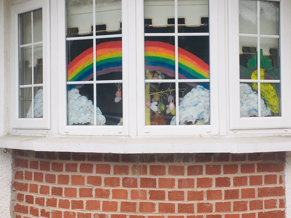 Since our last post we have celebrated Easter together, it was so lovely to have some quality time, a mini egg hunt and lots of fun blowing bubbles in the garden. The girls are loving their new tent and have dinner in it, play in it and even have sleepovers in it! We have been baking lots of yummy cakes lately too and the girls love this! As you can see daddy has painted a rainbow in our window above all else it’s a sign of better days to come, that the storm will pass and life will be normal soon enough.
