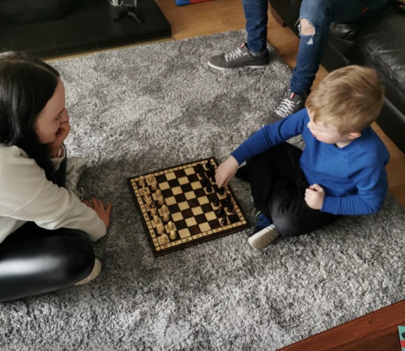 My uncle Phillip taught me how to play chess, now I am teaching my big sister.