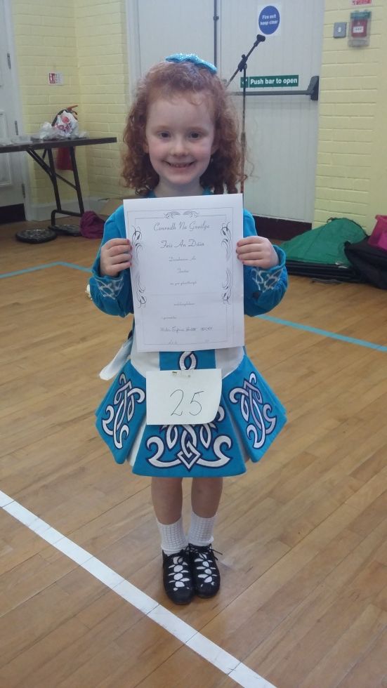 I took part in my first Feis, "Feis An Duin" today and was Highly Commended for the Irish dancing reel under 6.
