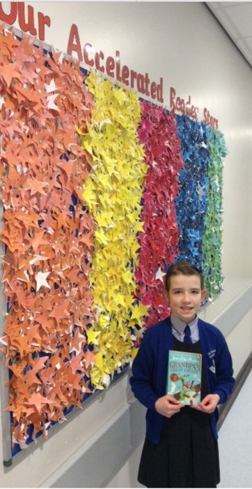 She reached the milestone on Accelerated Reader just before the mid-term break in Term 2. Grandpa’s Great Escape by David Walliams was her favourite read.