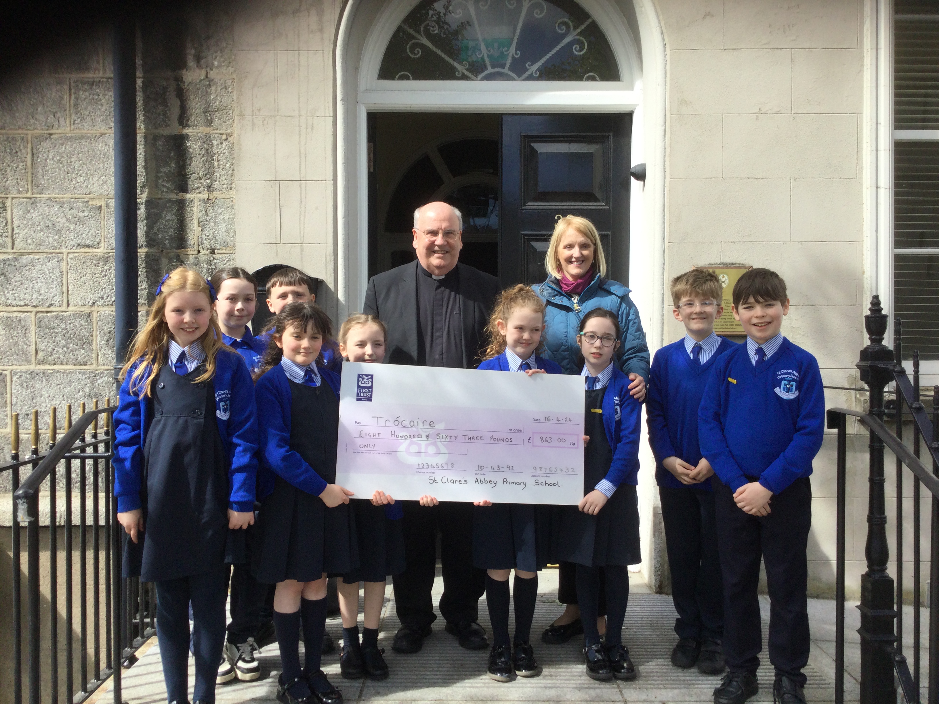 Our school council went to the Cathedral Presbytery and presented a cheque for £863 to Canon Brown, the total of our Trocaire fundraising campaign during Lent. He will pass it on to Trocaire and was very appreciative.
