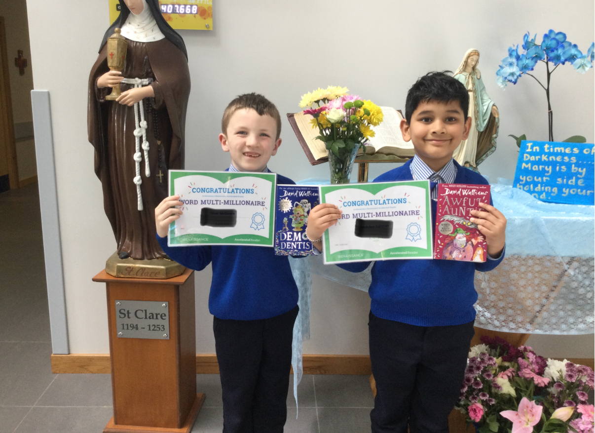 Many congratulations to our Accelerated Reader ‘Word Multi-Millionaires’. To become a Word Multi-Millionaire, pupils have to read over two million words and pass the relevant Accelerated Reader quizzes. Well done boys.