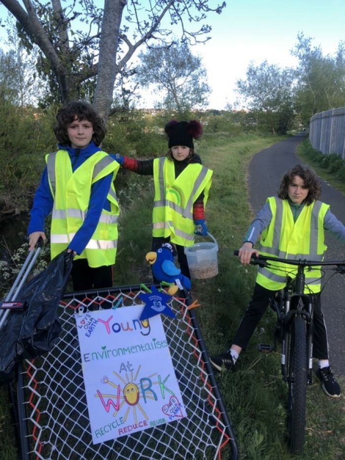 Every weekend we cycle down to the towpath to refill the bird feeders that we have left down there. We also pick up the litter and take it home. We sort the rubbish out and recycle what we can.