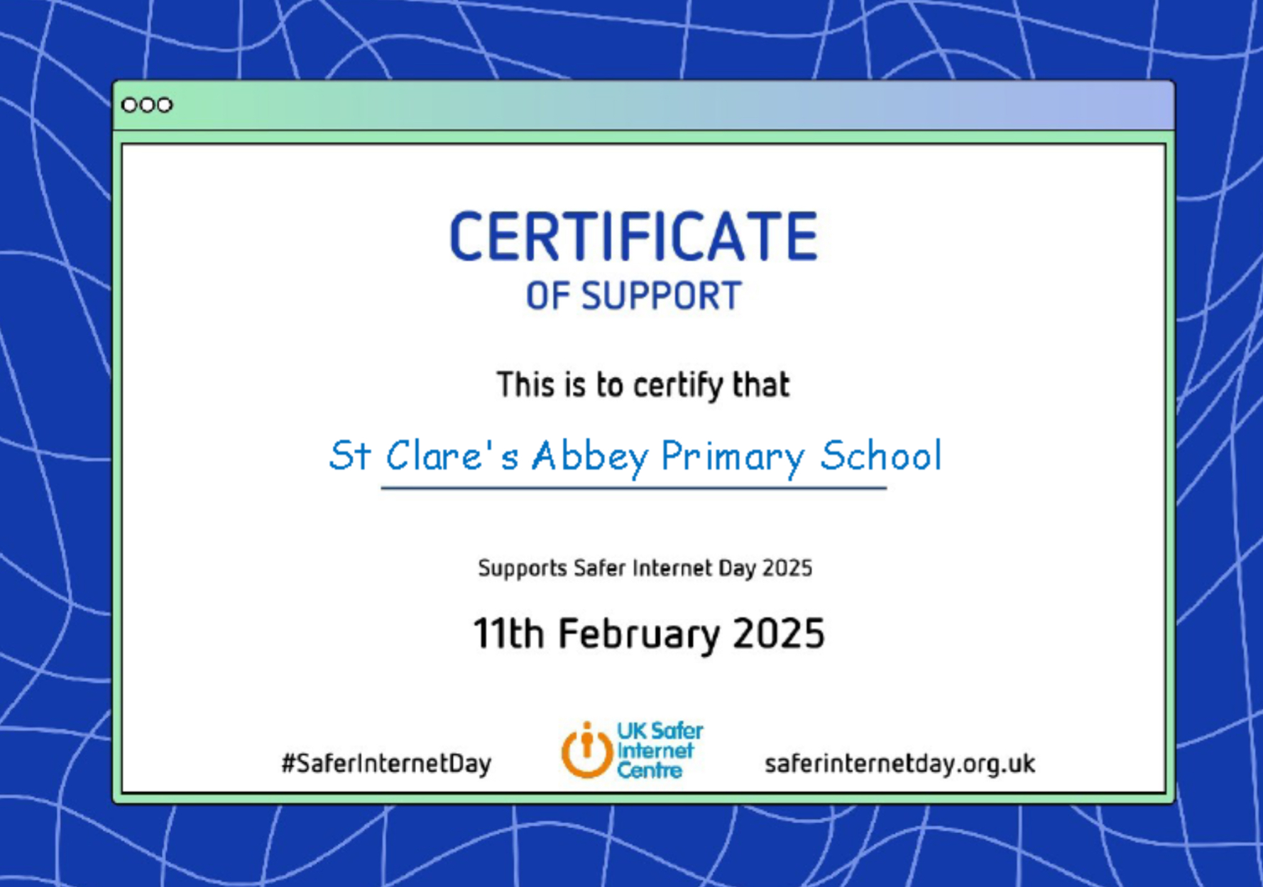 St Clare's Abbey Primary School understands the importance of internet safety and use two reputable agencies to ensure this is upheld in our school.