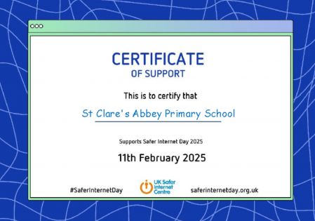St Clare's Abbey Primary School understands the importance of internet safety and use two reputable agencies to ensure this is upheld in our school.
