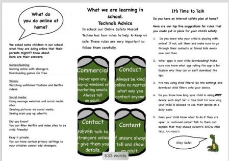 As part of our Online Safety mission within the school we have introduced a mascot called Technosaur. The pupils from Nursery right through to P7 will learn all about how to stay safe online and be kind and responsible when using the internet.