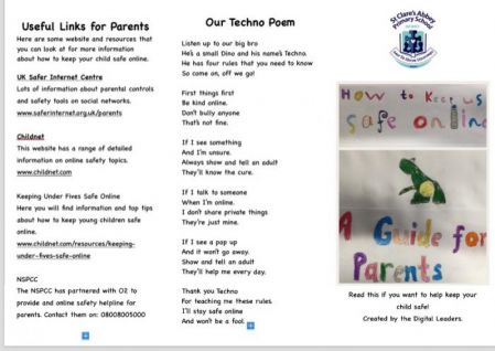 Techno and all images associated with the identity of our eSafety mascot is copyright protected and owned by St Clare's Abbey Primary School.