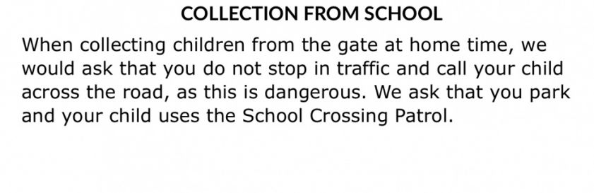 We urge parents to talk to their child/children about ROAD SAFETY outside our school.