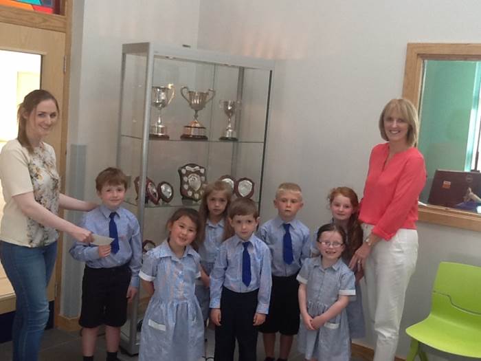 Mrs Kennedy, mummy of Connor in P1 is pictured accepting a cheque for £300 presented by a selection of our younger children. The donation was made following the recent awareness raising campaign led by Connor in relation to Anaphylaxis, a condition about which he knows a huge amount. We are all more knowledgeable and tuned into the simple steps that we can take to reduce risks for our children who take anaphylactic reactions.