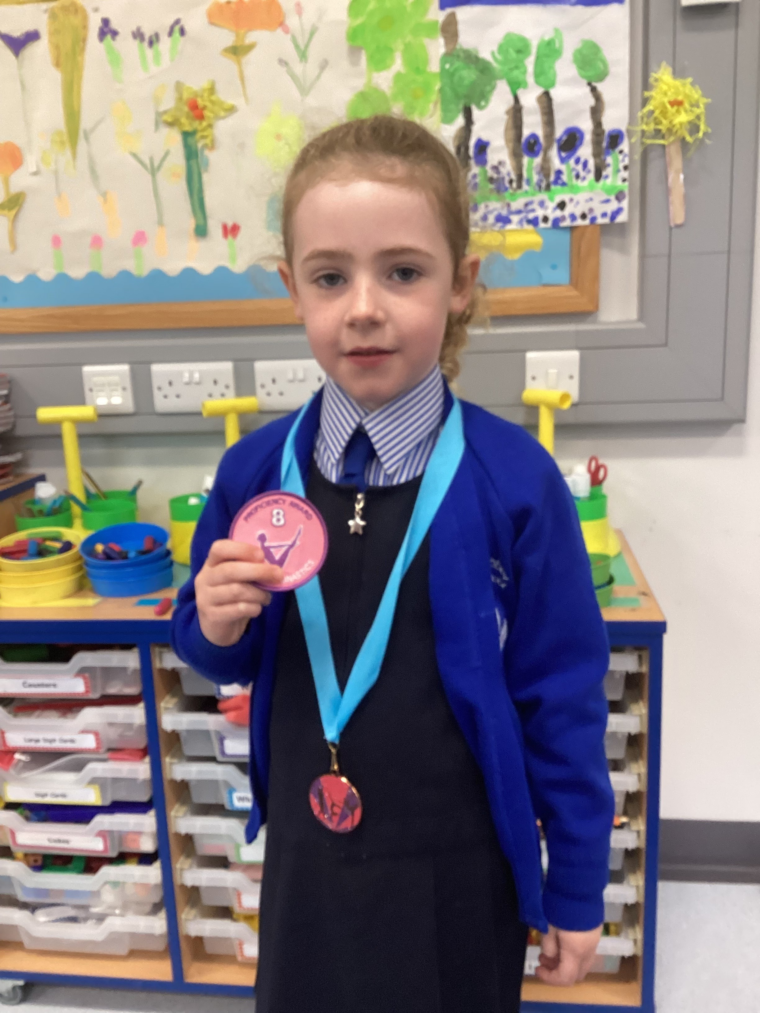 Congratulations to this wonderful young lady in Mrs Mc Parland’s Primary one class who achieved the Excel School of Gymnastics proficiency award level 8.