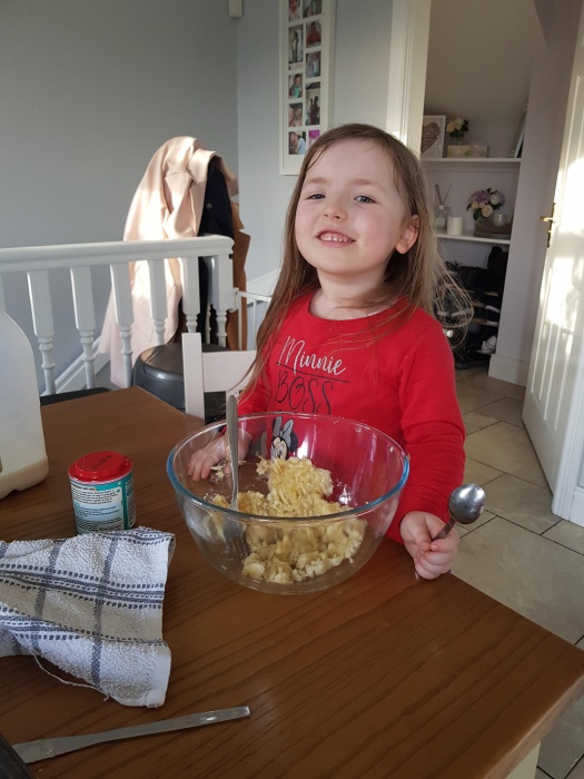 We have been busy at home with arts and crafts and baking- in between playtime and being a great big sister    She has made her Easter bonnet, banana bread and some cake and buns so far. She cant wait to get back to school to make more to share with her friends who she misses very much.   Happy Easter.