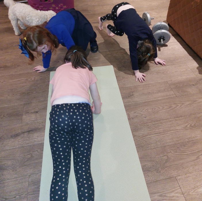 At the start of Children’s Mental Health Week I had three little St Clare’s Abbey pupils from Mrs Walsh’s P.2 class help me with my exercises. Ailbe, Elodhi and Mya decided to join me in stretching and yoga. It was very relaxing and made us all feel happy.