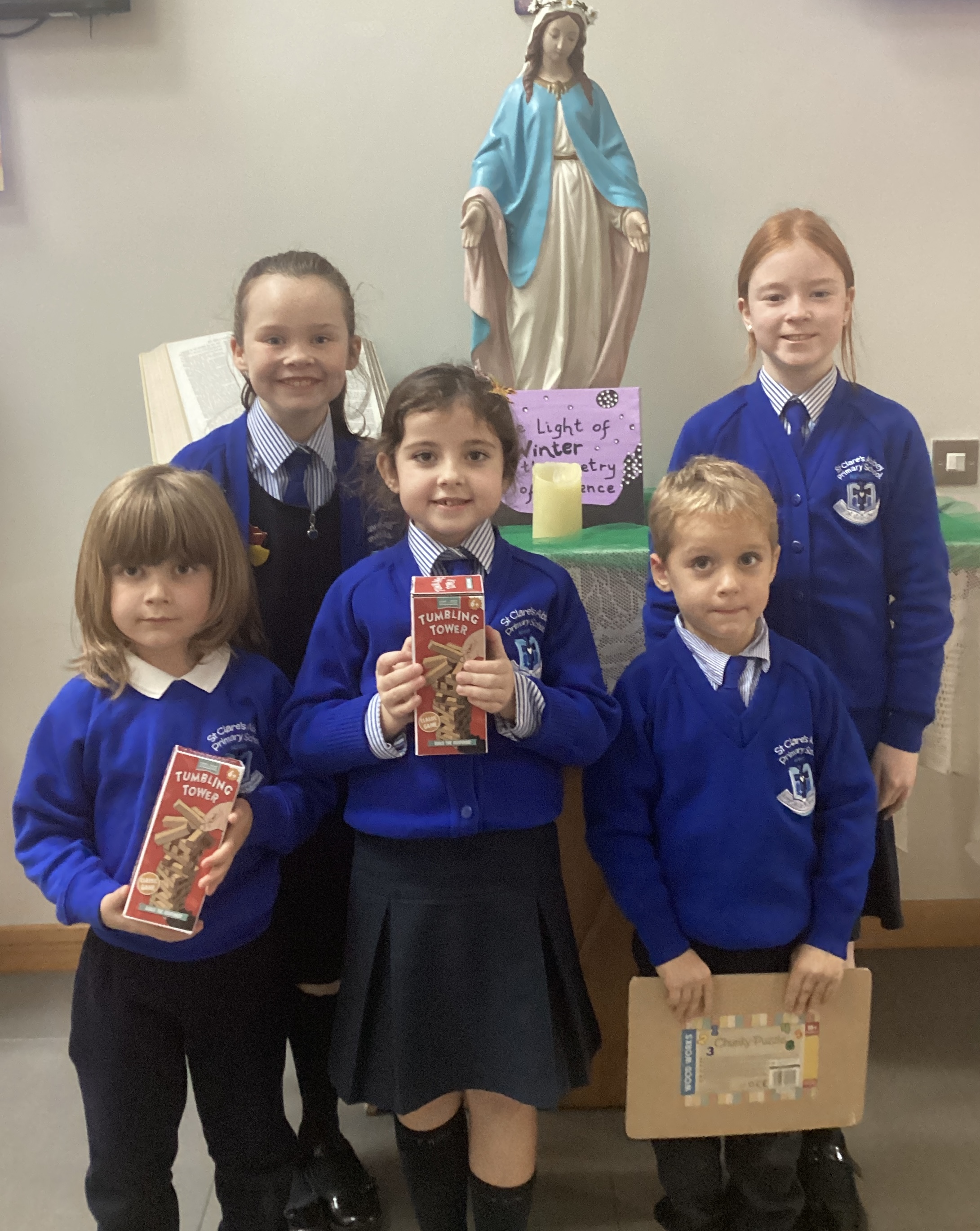 We had a busy Maths Week in St Clare’s Abbey PS. Our Numeracy Team came up with creative ways to investigate and celebrate maths throughout the week. On Friday, our Primary 7s took part in a live, online IZAK 9 session. On Tuesday our P7 numeracy held a whole school BINGO competition. The pupils had to answer maths facts to find the answer.