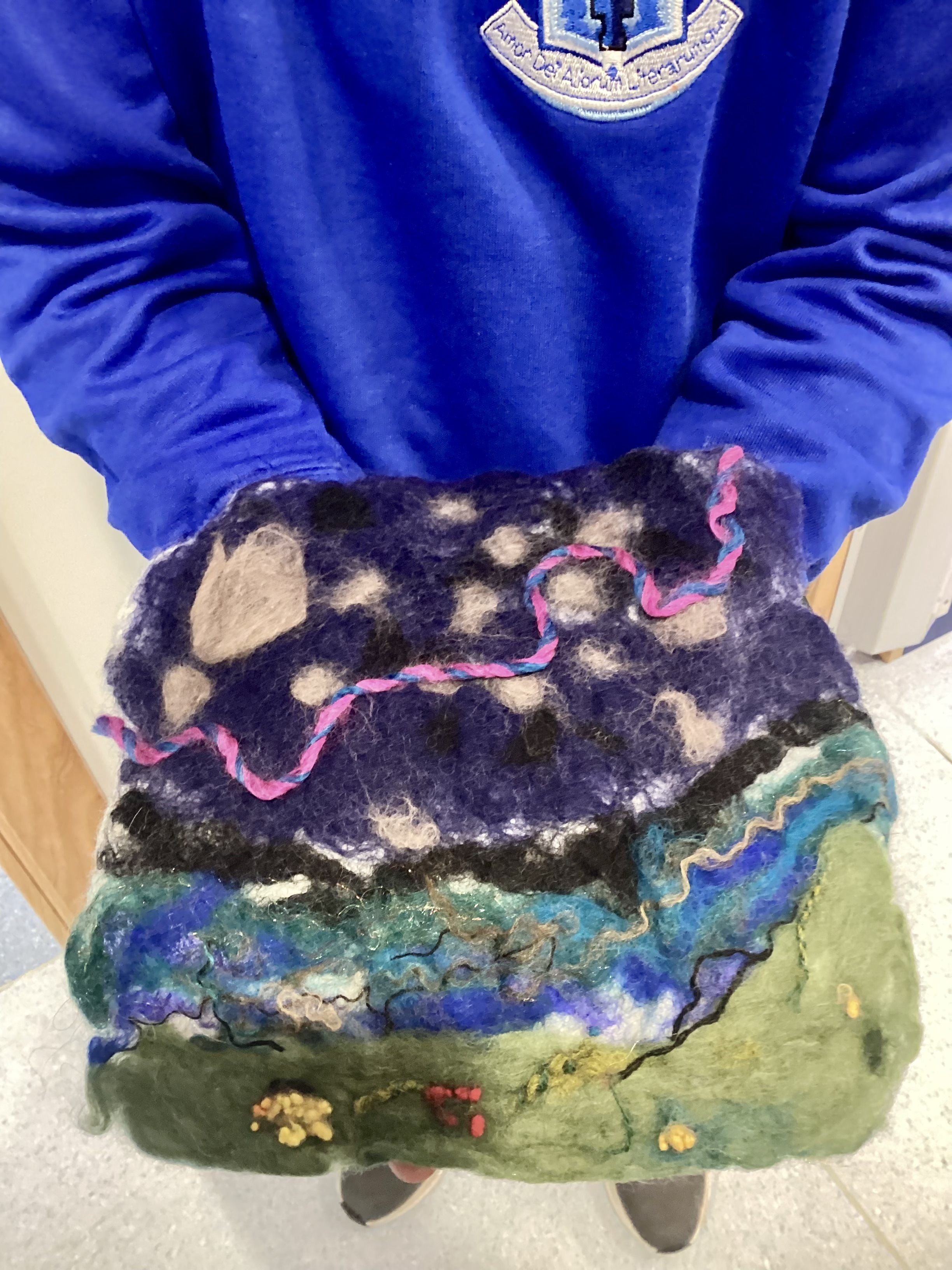 During a visit to Sticky Fingers I designed and made a picture from wool, to remember seeing the Northern Lights on Friday 10th October 2024.