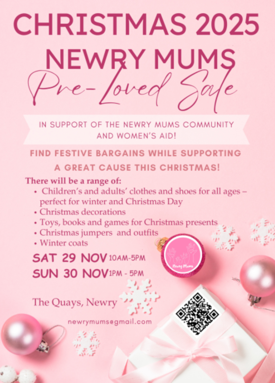 There will be a Newry Mums Pre-Loved Sale taking place in The Quays, Newry on Saturday 29th & 30th November. The sale will include a wide range of winter clothes for children and adults, books, and toys - all at heavily discounted prices for families.