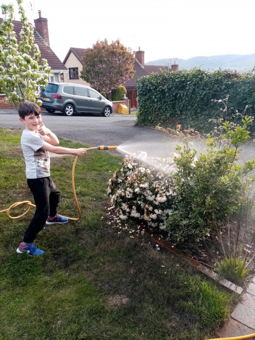 We worked in the garden this evening, in conjunction with Earth Day, watering our flower beds due to the beautiful spring weather we are having.