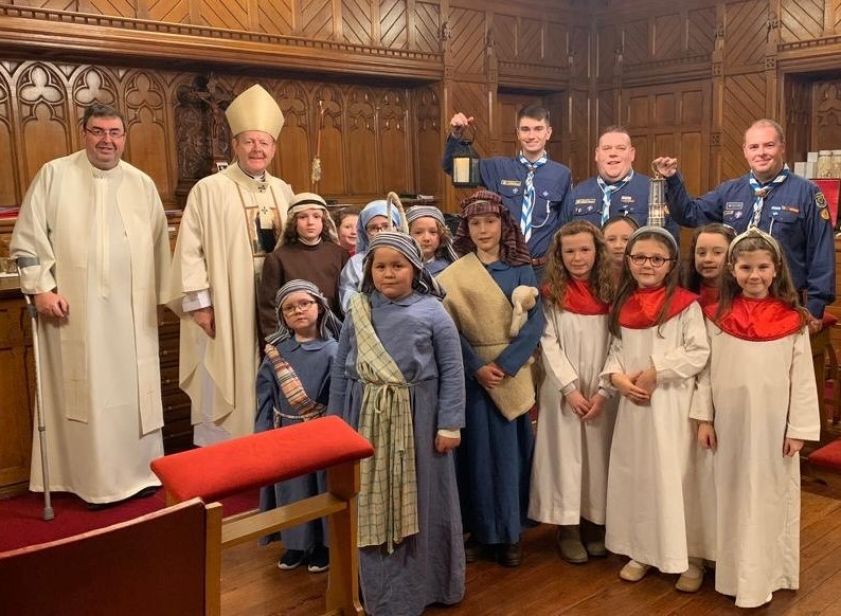 Boys and Girls from our school are pictured with Archbishop Eamon Martin, Father Desmond Loughran and members of the Scouts before Christmas Eve Mass in Newry Cathedral. The boys and girls re-enacted the Nativity celebrating the birth of Jesus to a packed Cathedral.