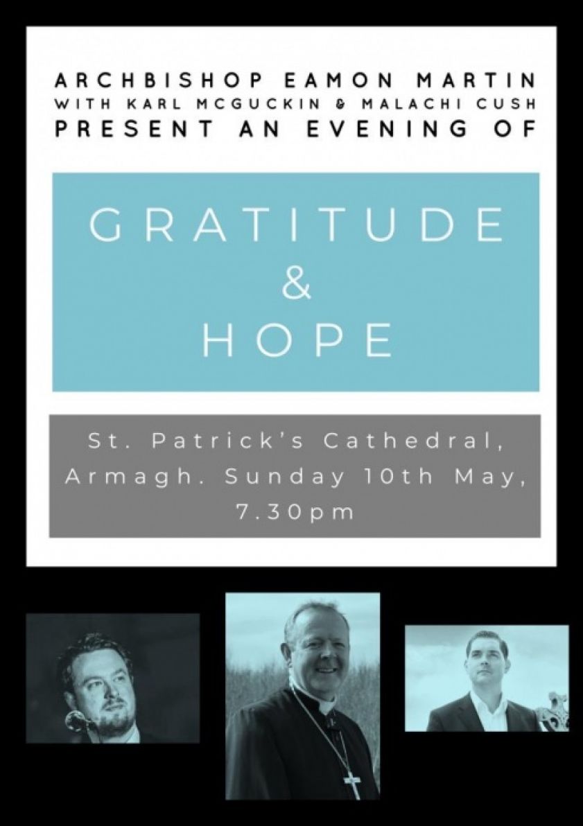 In response to the Covid – 19 Pandemic, Archbishop Eamon Martin will lead a special Celebration of Gratitude and Hope in St Patrick’s Cathedral, Armagh, on Sunday 10th May at 7.30pm.