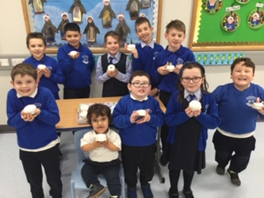 A number of boys and girls in P5 and the ECPD washed their hands, rolled up their sleeves, put on their aprons and baked the most amazing Christmas Cakes.