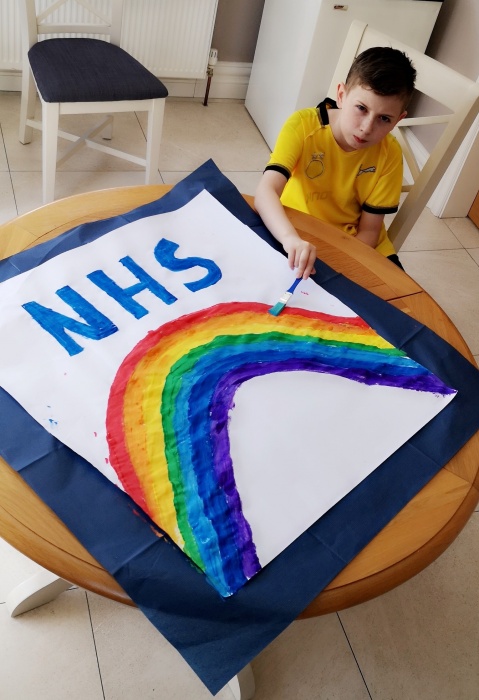 Today I have my Jersey inside out and I am painting a window poster for the NHS.