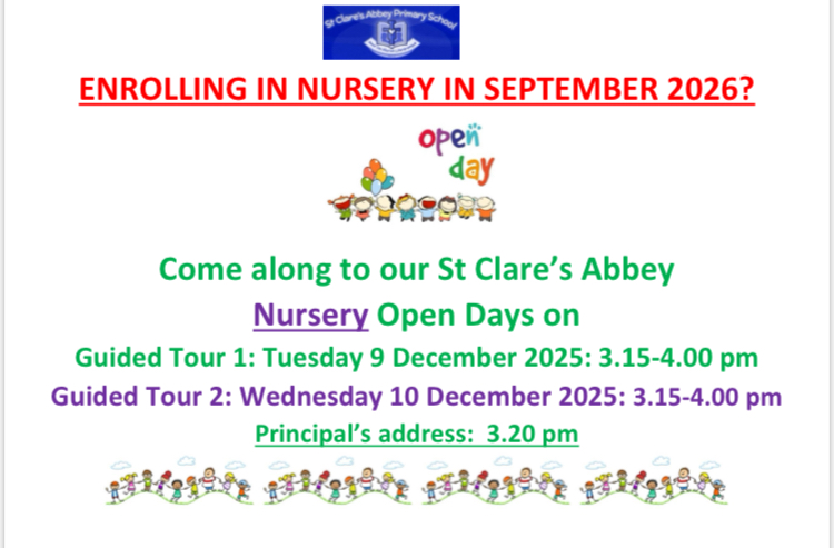 St Clare's Abbey Primary School, Nursery, ECPD, 12 Courtenay Hill, Newry, BT34 2EA | T: 028 3026 2175
